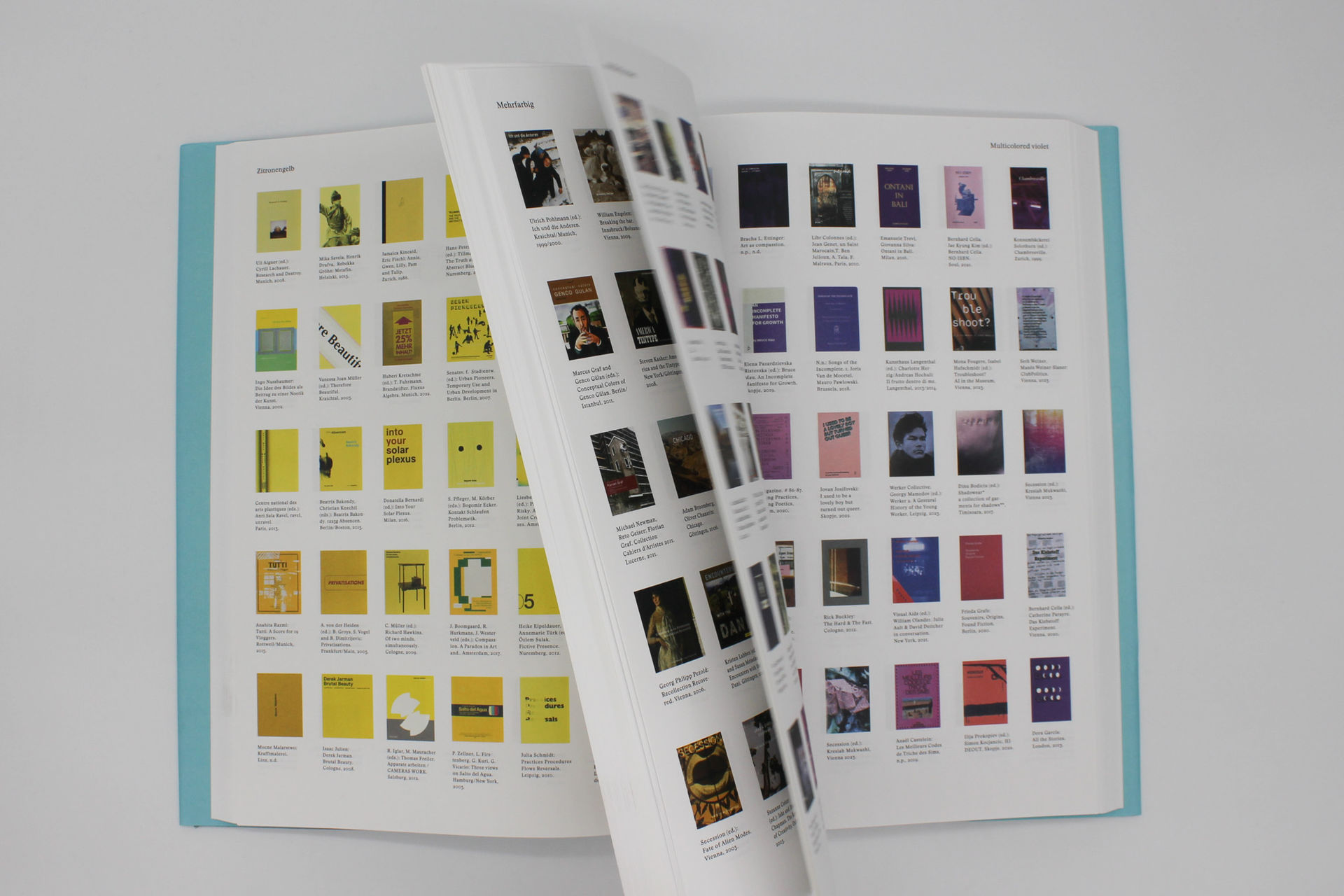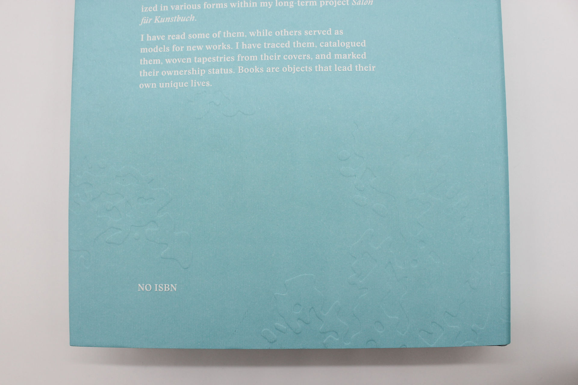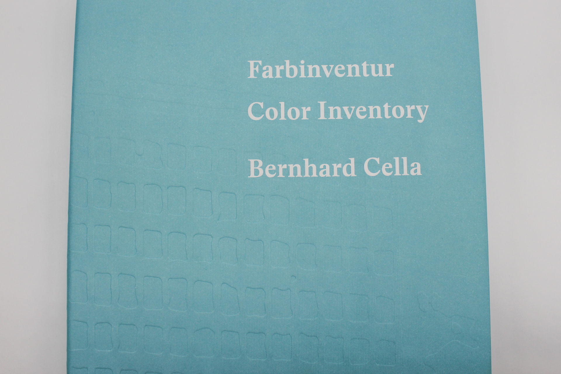 Die Publikation von Bernhard Cella ist eine Farbinventur, die eine Auswahl von Buchtiteln präsentiert, mit denen sich der Künstler seit den frühen 2000er-Jahren beschäftigt hat. Es handelt sich um eine Zusammenstellung von Kunst- und Künstlerbüchern zu verschiedenen Themen, Farben und Herstellungstechniken, die auf unterschiedliche Weise sein Interesse geweckt haben. Die Objekte im Buch wurden im Rahmen des Langzeitprojekts „Salon für Kunstbuch“ gesammelt, ausgestellt und in Beziehung gesetzt. Auffällig ist auf den ersten Blick vor allem die sehr große Hochprägung, die auf diesem Material und dem einfärbigen Hintergrund besonders gut zur Geltung kommt.
